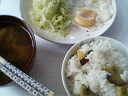 さつまいもごはんとごっさりキャベツのお好み焼き。