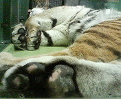 1 緊張感ゼロで、完全にお昼寝中のトラ。